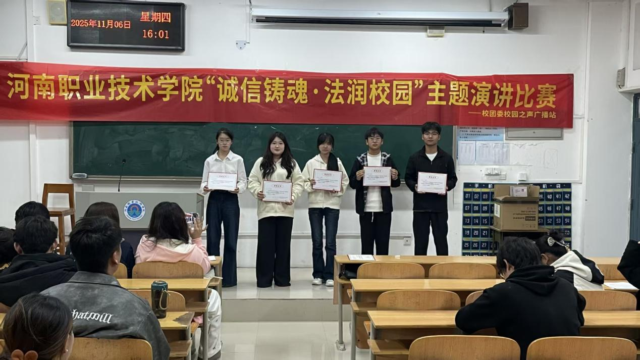 现场评委从主题立意、语言表达、现场感染力等维度进行公正打分,经过激烈角逐,比赛最终评选出一等奖1名、二等奖3名、三等奖5名,优秀奖17名。参赛选手纷纷表示,将以此次比赛为契机,争做诚信法治的坚定捍卫者和积极传播者,让青春在崇德守法中绽放绚丽光彩。