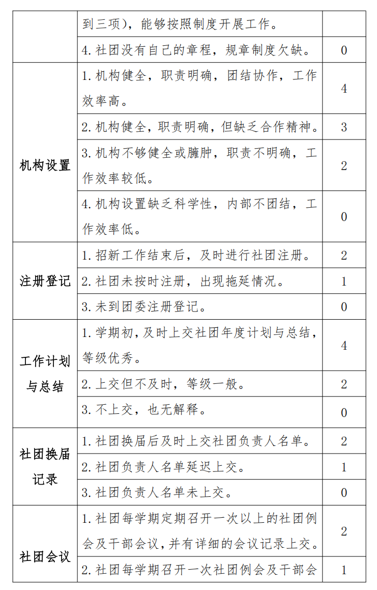 90 分)可评为五星级学生社团,80 分—90 分者可评为四星级学