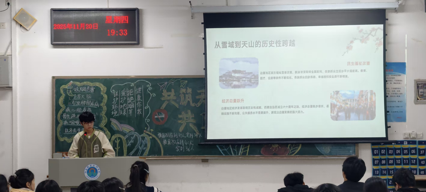 课堂文明与健康校园建设环节,团课以“沉浸式体验+互动研讨”形式展开。通过播放“手机沉迷课堂”“烟草危害健康”主题短片,用真实数据和典型案例敲响警钟;团课聚焦习近平总书记重要回信精神的深刻内涵。授课教师结合回信原文,系统解读“扎根边疆、服务奉献”的时代要求,分享了球盟会官网往届毕业生投身西部计划、扎根边疆基层的奋斗故事——他们在支教讲台传递知识,在乡村振兴一线挥洒汗水,在戍边岗位坚守初心,用实际行动诠释了青年的责任与担当。