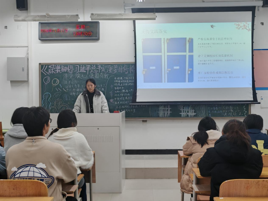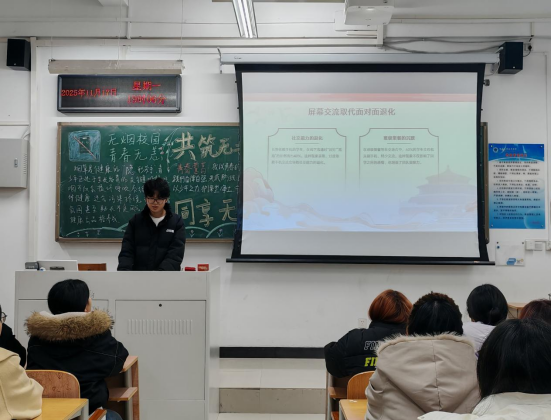 团课开始,各班团支书向同学们讲述了过度使用手机对学业专注力的影响,以及烟草使用对个人健康和公共环境的危害。指出创建无手机干扰的高效课堂和清新无烟的校园环境,是保障教学质量、维护师生健康的重要基础,需要全体同学共同践行。通过科学规划时间、认清行为危害、增强自制能力、丰富课余生活、掌握健康知识、尊重他人权益、引领文明风尚等具体举措,自觉培养健康的学习生活习惯,主动抵制不良诱惑。